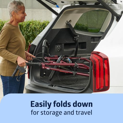 Built-In Seat & Storage — Padded seat with a storage basket underneath for carrying personal items with ease.