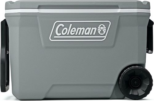 Convenient Mobility — Rolling cooler with a sturdy plastic handle for easy transport.